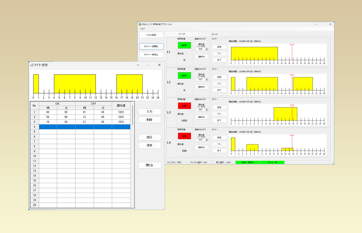 - L1~L8を別々のタイマー設定ができます。